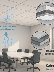 Les panneaux absorbent les excès de chaleur (infrarouges émis par les personnes, équipements, éclairage…) et procurent une sensation de fraîcheur douce, sans climatisation mécanique.